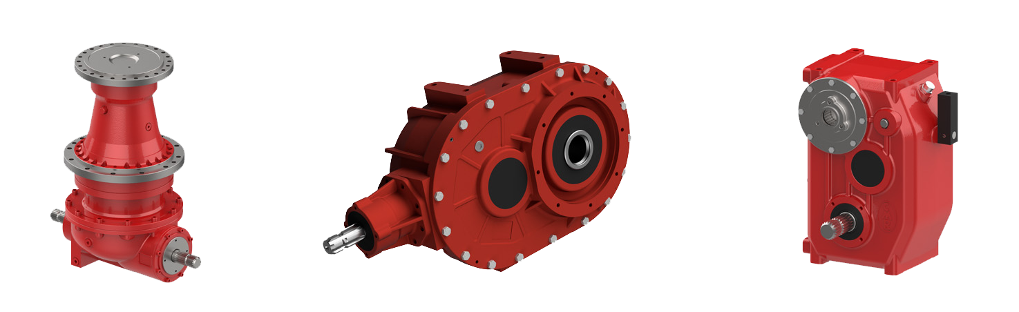 Caixas de engrenagens angulares, redutores e multiplicadores.