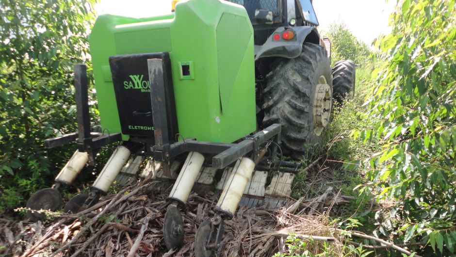 A Eletroherb é um implemento agrícola utilizado acoplado à tomada de potência do trator e com a principal característica de possuir dois mecanismos distintos de aplicadores de choques elétricos. Com diferentes tamanhos e potência do gerador, consegue se adaptar aos distintos objetivos dos usuários.
