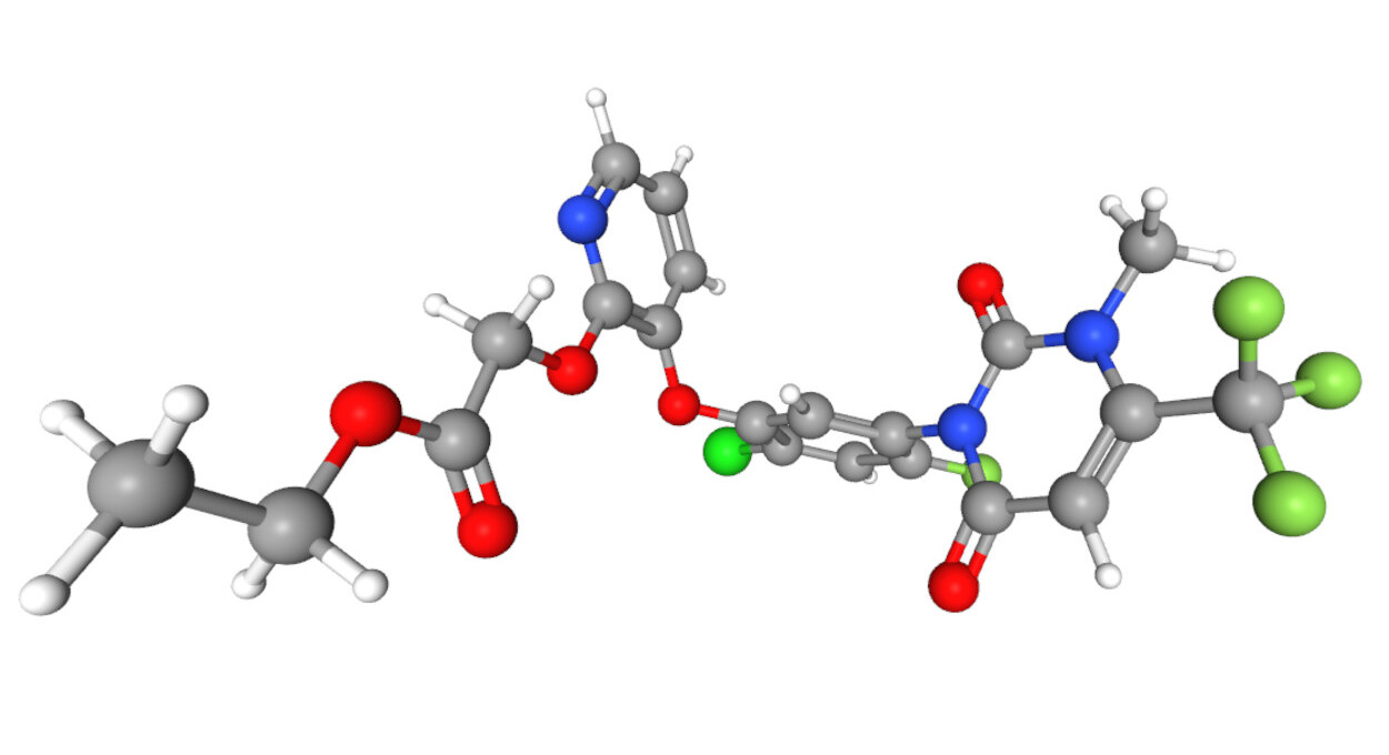 Classe química: Pyrimidinediona (ou feniluracila), subclassificada como herbicida N-fenilimida. Pertence à família dos inibidores da protoporfirinogênio oxidase (PPO), com estrutura derivada de uracila fenilada.