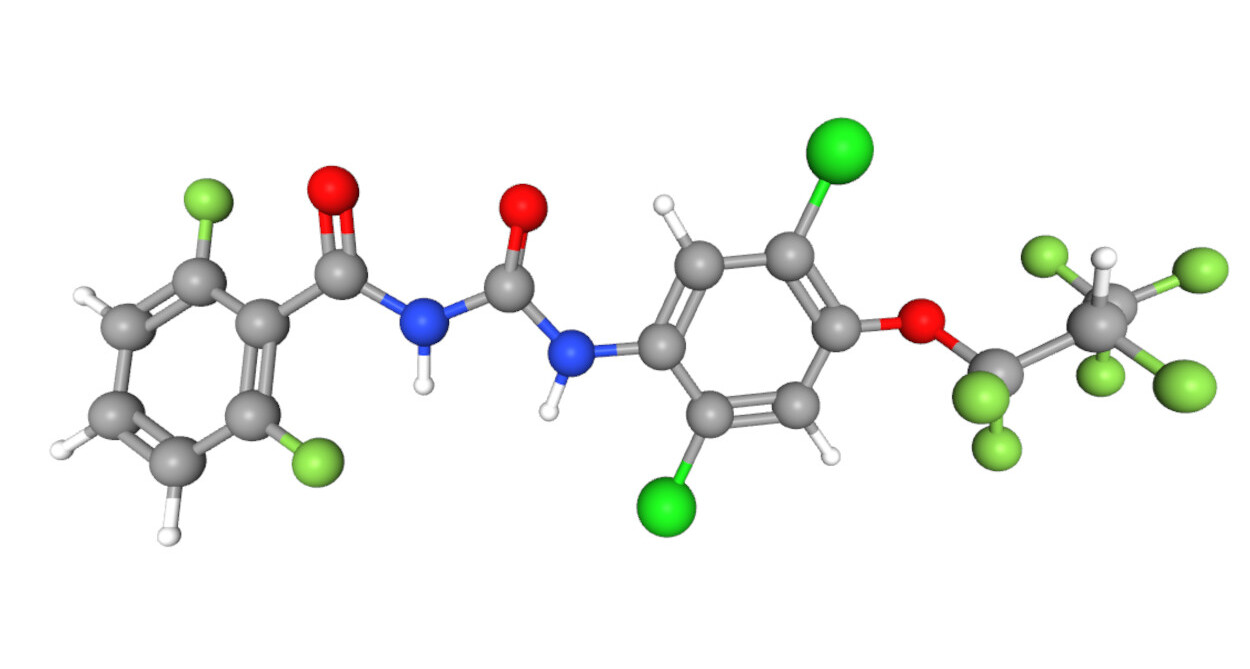 Classe química: inseticida da classe das benzoylureias (ou benzoylfenilureias), um grupo de reguladores de crescimento de insetos (IGR) que inibem a síntese de quitina.
