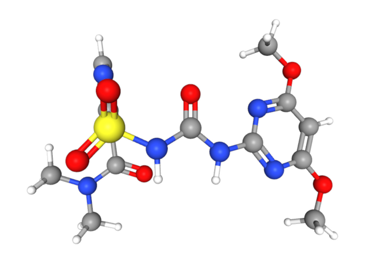 Classe química: Sulfonilureia (HRAC Grupo 2; atua como inibidor da enzima acetolactato sintase - ALS).
