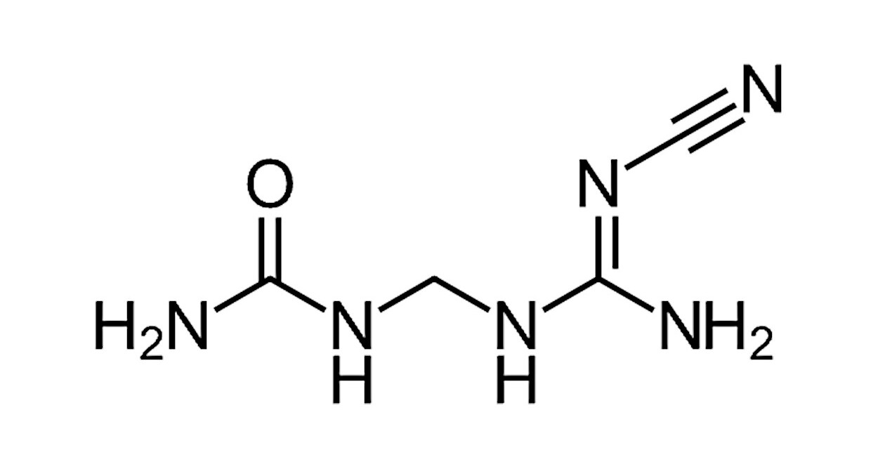 Classe química: inibidor de nitrificação (classe funcional). Quimicamente, é classificado como produto de reação oligomérico de ureia e derivados de guanidina, pertencente à família de adutos de formaldeído-DCD-ureia. Não é uma molécula única, mas uma mistura de compostos heterocíclicos nitrogenados (como triazinas e guanidinas cianadas), projetados para interferir em enzimas bacterianas do solo.