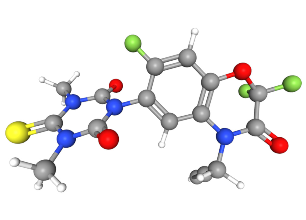 Classe química: 1,3,5-Triazinano (especificamente, um derivado de 1,3,5-triazina-2,4-diona com grupos fluorados e ti oxo). Pertence à subclasse de inibidores da protoporfirinogênio oxidase (PPO), representando uma nova família química dentro dos herbicidas do Grupo E do HRAC (Herbicide Resistance Action Committee), distinta dos imidazolil dipirrolidinas e ftalimidas tradicionais.