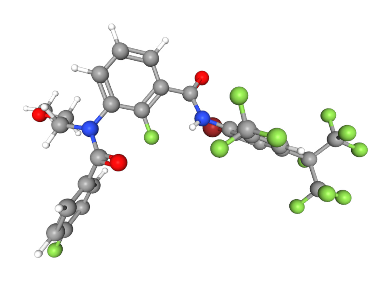 Nome químico oficial: N-[3-[[[2-bromo-4-[1,2,2,2-tetrafluoro-1-(trifluoromethyl)ethyl]-6-(trifluoromethyl)phenyl]amino]carbonyl]-2-fluorophenyl]-4-fluoro-N-(2-methoxyethyl)benzamide