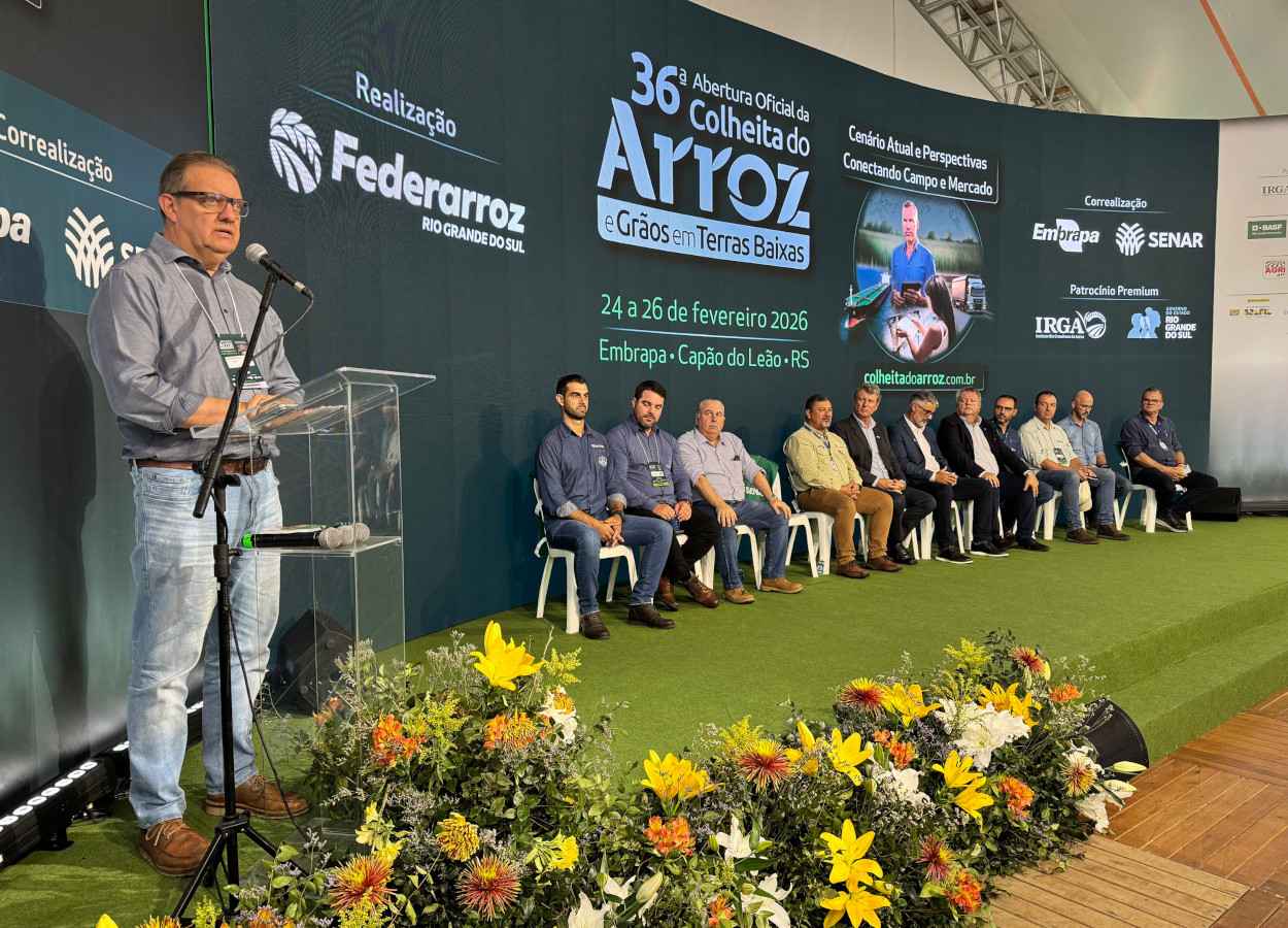 O presidente da Federarroz, Denis Nunes, mencionou resiliência do produtor diante de eventos climáticos extremos. Afirmou que o Estado mantém protagonismo nacional e internacional na produção. Defendeu garantia de abastecimento interno e busca por novos mercados externos. Projetou público superior ao do ano passado.