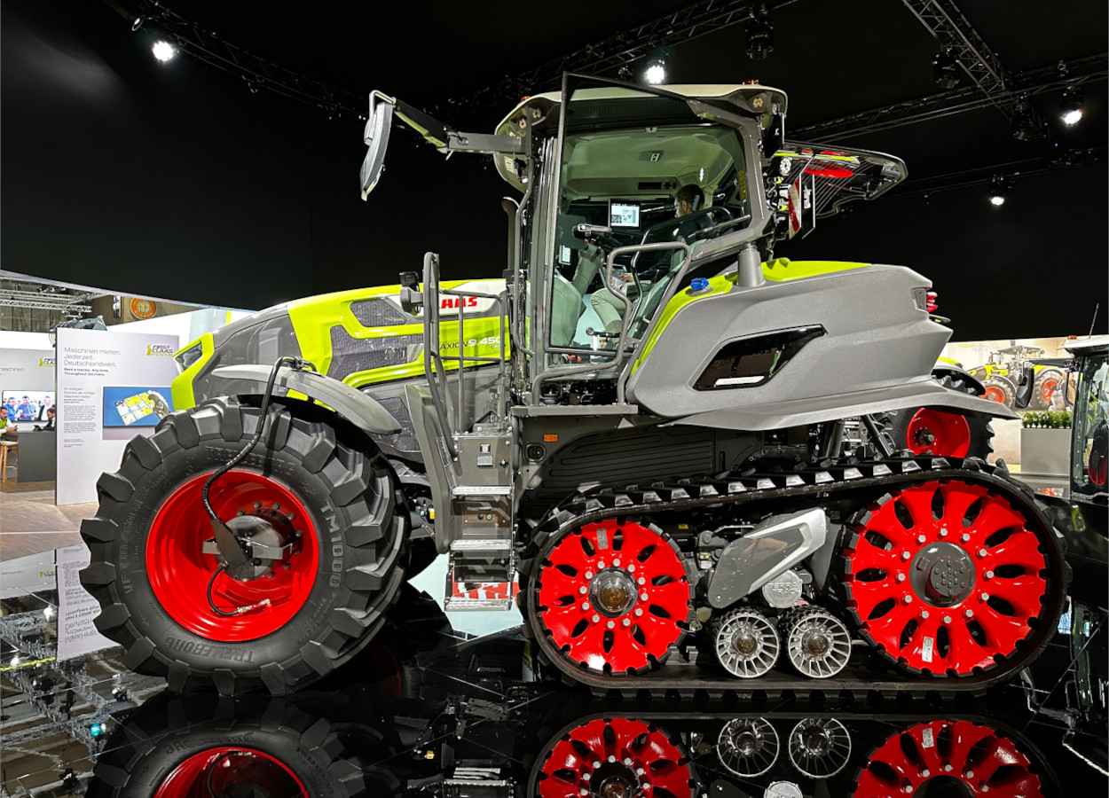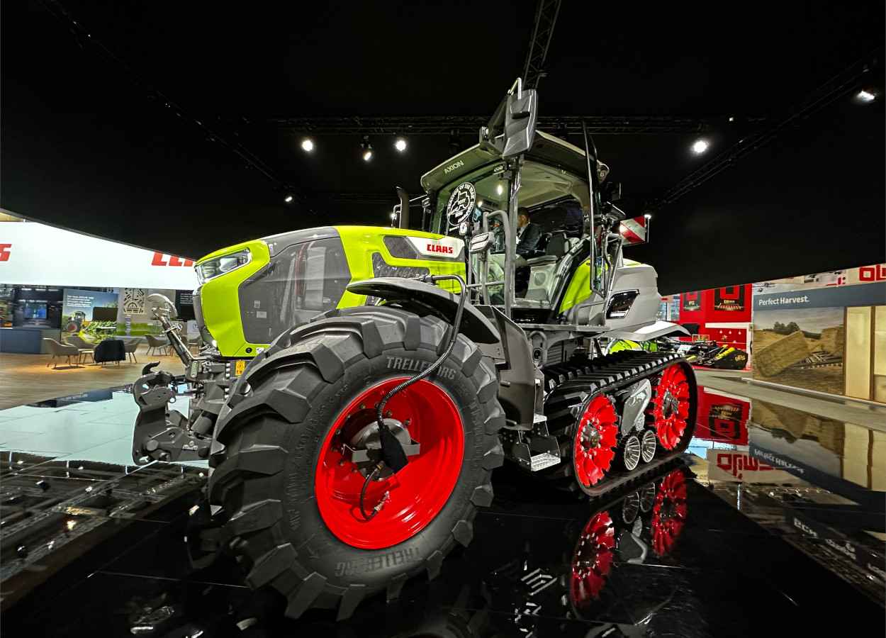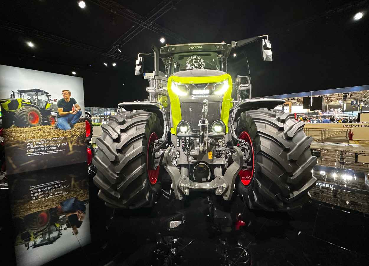 Segundo a Claas, a série Axion 9 Cmatic foi projetada para atender grandes propriedades e prestadores de serviço com foco em desempenho, economia e automação. O modelo de 450 cv incorpora motor FPT Cursor 9 de 6 cilindros, transmissão Cmatic com gerenciamento preditivo Auto Load Anticipation, e sistema Terra Trac com até 50% mais área de contato com o solo.