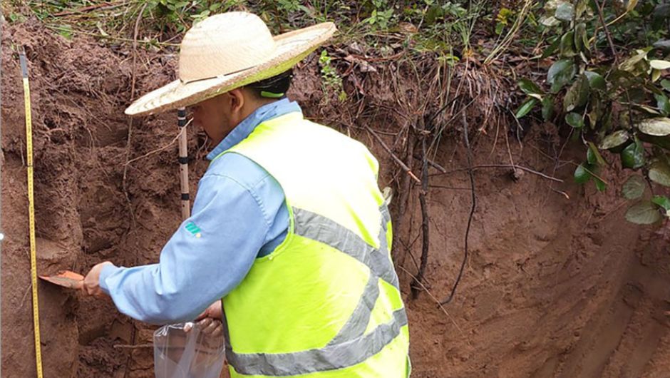 As amostras foram coletadas em experimentos de campo de longa duração, em instituições de pesquisa, propriedades agrícolas e áreas de floresta nativa, com maior representatividade dos biomas Cerrado e Mata Atlântica. As coletas ocorreram em trincheiras de 0 a 100 cm de profundidade, para captar variações de matéria orgânica da superfície ao subsolo.