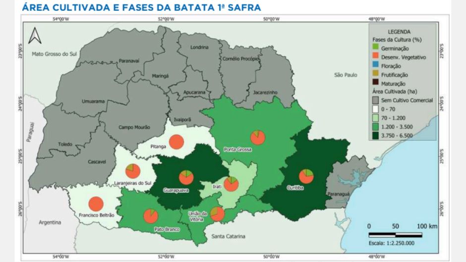 A batata enfrenta dificuldades semelhantes: o excesso de umidade tem impedido a execução de tratos culturais e atrasado o plantio em novas áreas.
