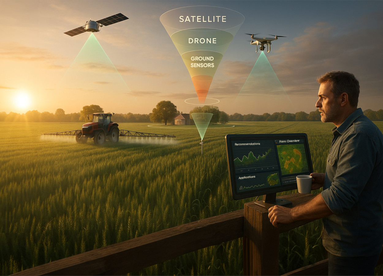 A solução automatiza o monitoramento e a tomada de decisão no campo. Ao detectar indícios de falhas ou presença de plantas daninhas por imagens de satélite, o sistema aciona automaticamente drones para inspecionar a área com imagens de alta resolução. Em paralelo, sensores nos pulverizadores e no solo monitoram condições da plantação em tempo real.
