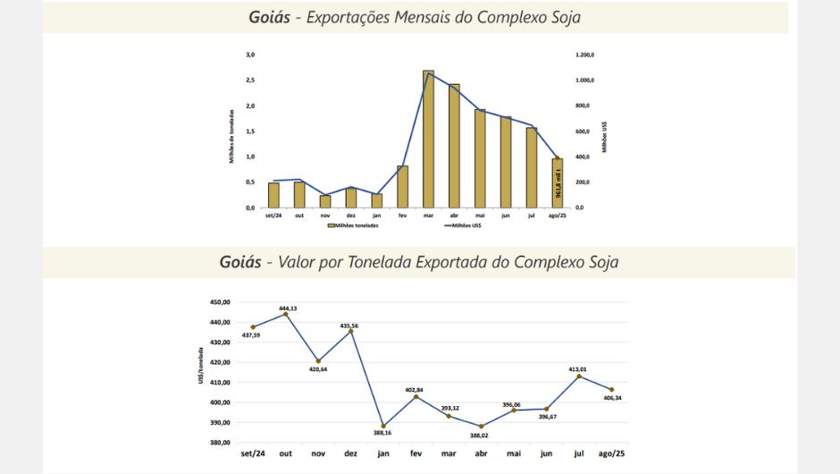 Goiás segue ampliando seu protagonismo no agronegócio brasileiro. De acordo com a 73ª edição do informativo Agro em Dados, da Secretaria de Agricultura, Pecuária e Abastecimento de Goiás (Seapa), o estado registrou novo recorde nas exportações do complexo soja, com 12,4 milhões de toneladas embarcadas entre janeiro e agosto de 2025 - alta de 6,6% em relação ao mesmo período do ano anterior.