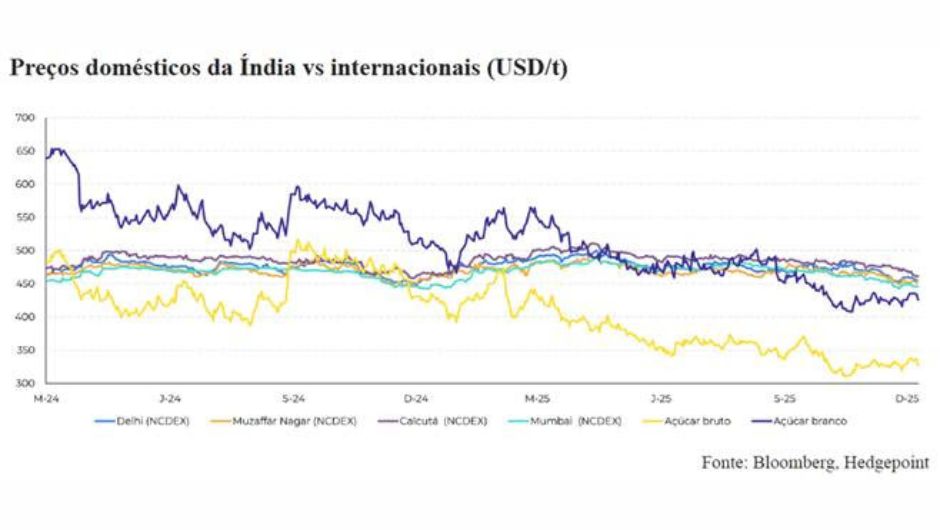 “A recuperação da produção indiana é forte e consistente. A melhora na moagem, no rendimento e no ritmo da safra reforça o viés baixista do mercado global neste início de ano”, explica.