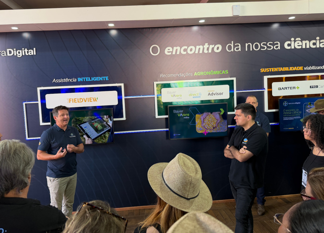 A companhia também amplia a integração com fabricantes de máquinas. Parceria com a John Deere permite envio direto de prescrições ao centro de operações via conexão sem fio. A funcionalidade elimina etapas manuais e reduz erros. O recurso chega na próxima safra de verão e inclui dados do Bayer Valora Milho.