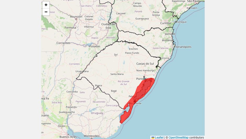 O Inmet emitiu alerta de grande perigo para vendaval no litoral do Rio Grande do Sul, abrangendo 25 municípios, incluindo Porto Alegre. Há risco de destelhamentos, queda de árvores, interrupções no fornecimento de energia elétrica e impactos em áreas agrícolas.