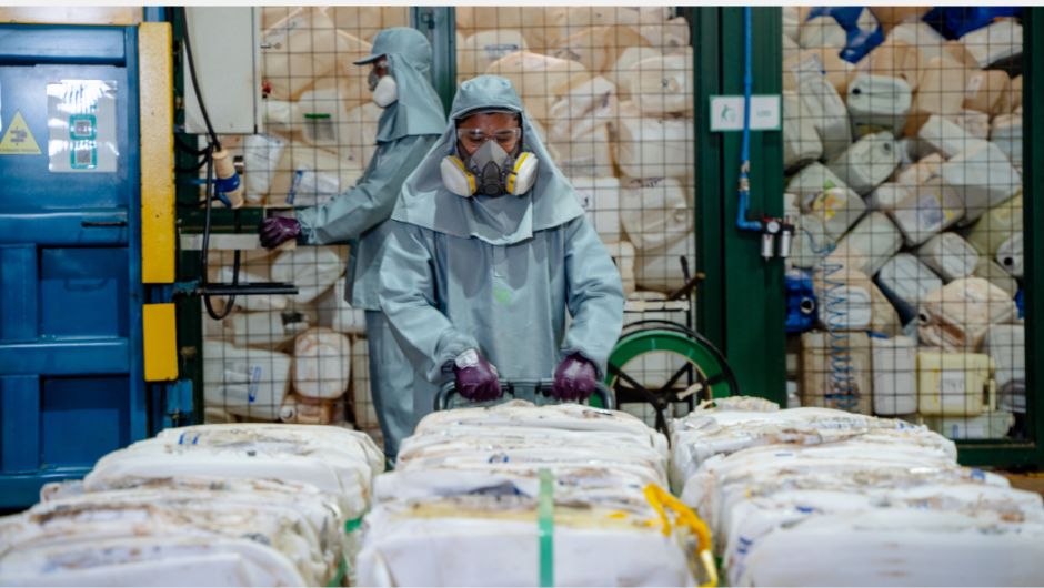 De acordo com o Instituto Nacional de Processamento de Embalagens Vazias (Inpev), entidade que representa a indústria dentro do Sistema, 100% das embalagens recebidas têm destinação correta, sendo 92% recicladas e o restante encaminhado para coprocessamento ou incineração, garantindo segurança ambiental.