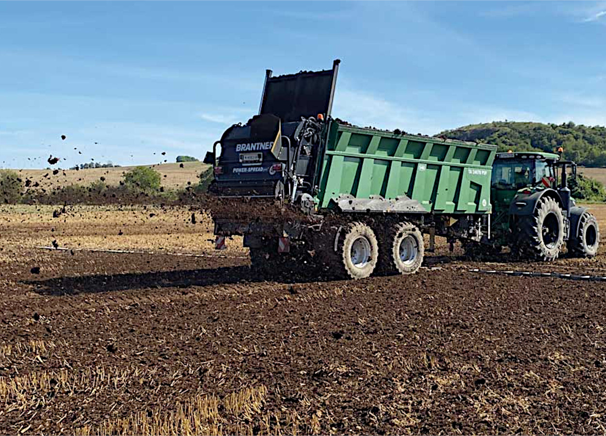 Os testes ocorreram em um campo colhido de trigo na Baixa Áustria. A unidade CSP2-2 da Brantner possui dois discos espalhadores com seis pás ajustáveis e dois batedores horizontais. O equipamento utilizou esterco bovino com 19,4% de matéria seca e densidade de 726 kg/m³.