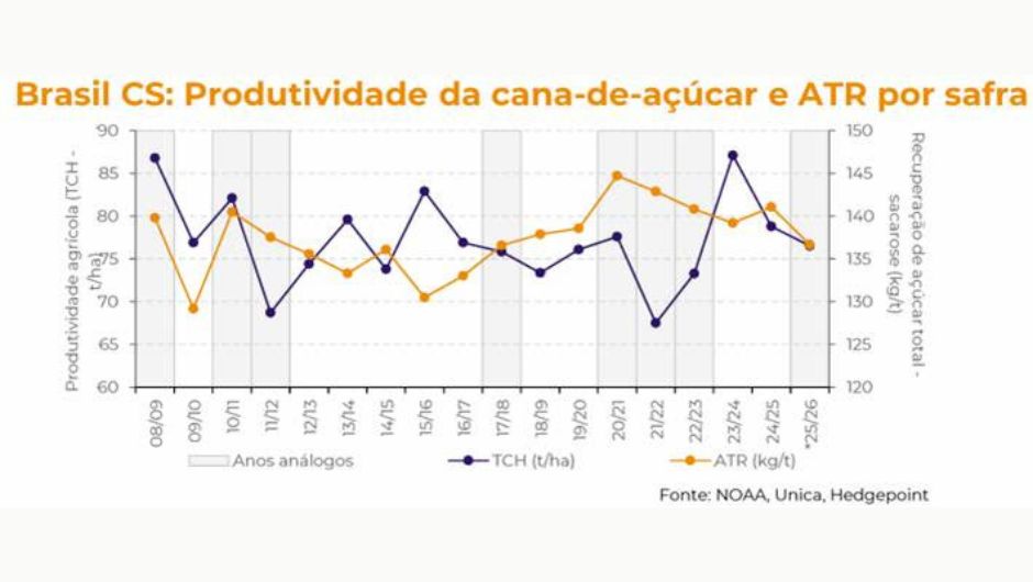 No setor sucroalcooleiro, a intensidade do La Niña será determinante. Se for forte, pode comprometer a produtividade no Brasil e atrasar a moagem no Sudeste Asiático, com reflexos diretos na oferta global de açúcar.