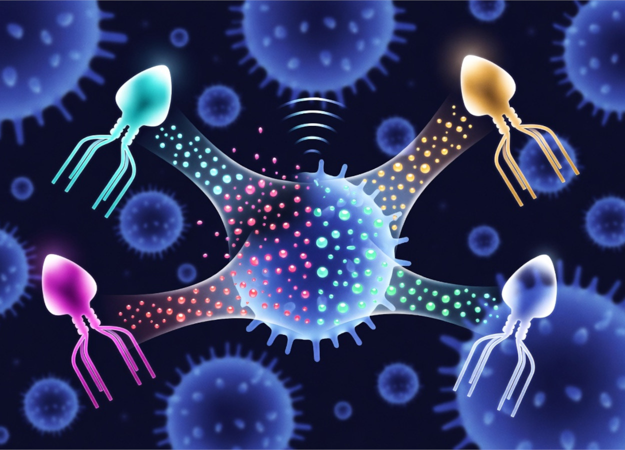 Bacteriófagos (fagos) que infectam bactérias utilizam sinais químicos para influenciar o comportamento de outros vírus no mesmo ambiente. Estudo recente mostra interação entre sistemas de comunicação distintos. O resultado altera decisões entre lise e lisogenia. O mecanismo favorece bacteriófagos emissores e impõe custos aos receptores.