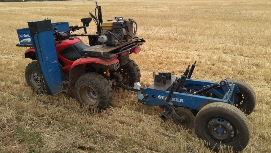 O equipamento é constituído por um chassi onde são montados quatro discos de corte de palhada igualmente espaçados em 0,25 metro. Os discos internos atuam como eletrodos potenciais e os externos como eletrodos de corrente. A condutividade elétrica do solo é obtida a partir do inverso da resistividade elétrica do solo mensurada pela diferença potencial entre a corrente emitida e aquela recebida. Os dados coletados foram gravados no sistema Fieldbox, de fabricação da mesma empresa. O equipamento foi tracionado pela área utilizando um quadriciclo, sendo obtidas 4.485 leituras de CE do solo.