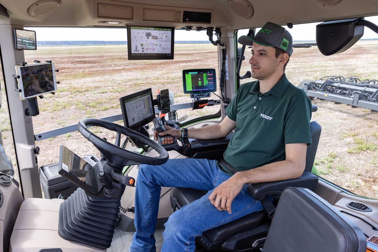 Dois recursos de gerenciamento de potência ajudam a explicar o posicionamento do Gen4. O Fendt Dynamic Performance (DP) adiciona até 30 cv conforme a demanda de consumidores auxiliares — como ventilação, ar comprimido e ar-condicionado — ampliando a disponibilidade de potência do conjunto quando há consumo adicional fora do eixo de tração. Já o Fendt Adaptive Power trabalha com níveis ajustáveis de potência para adequar o trator a implementos de menor exigência, reduzindo consumo e limitando esforços desnecessários sobre implementos e componentes do próprio trator em operações que não pedem potência máxima.