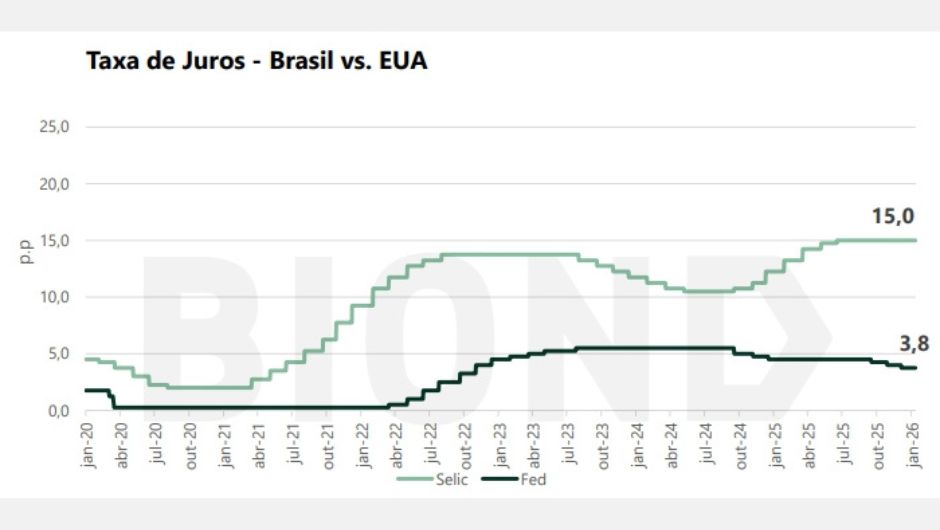 A valorização do real ao longo de 2025 foi sustentada por juros elevados no Brasil, inflação controlada e maior previsibilidade da política econômica, fatores que aumentaram a atratividade do país para o capital estrangeiro. Ao mesmo tempo, o enfraquecimento global do dólar, com o fim do ciclo de aperto monetário nos Estados Unidos, reforçou esse movimento.