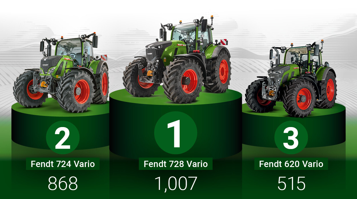 A Fendt ocupou as três primeiras posições pelo segundo ano consecutivo. A série 700 concentrou a maior participação de mercado entre séries únicas de fabricantes. Os modelos 724 e 728 responderam juntos por 7,3% de todos os novos registros de tratores no país.