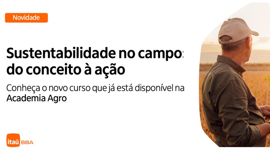 A Academia Agro do Itaú BBA lança a trilha Sustentabilidade no Campo: Do Conceito à Ação, desenvolvida em parceria com a Rehagro, empresa de educação para o agronegócio. A formação reúne conteúdos que combinam cartilhas em PDF e videoaulas organizadas por tema, com o objetivo de capacitar produtores rurais para a adequação socioambiental, garantindo segurança jurídica e competitividade.