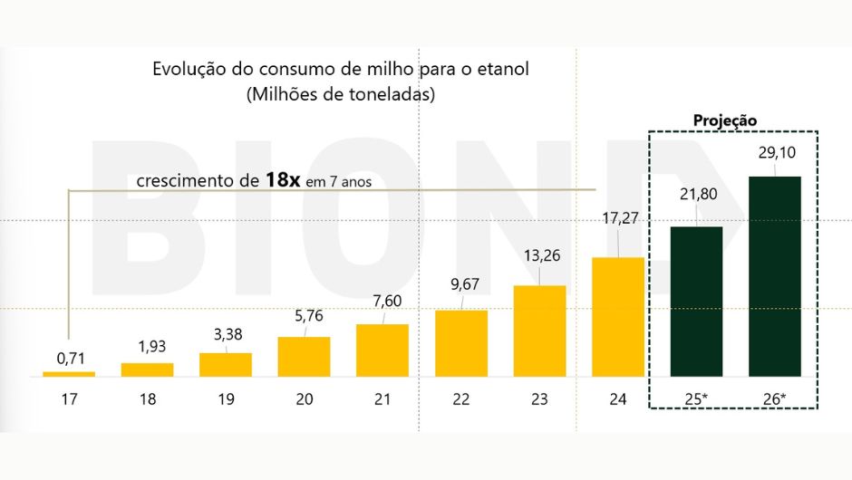A expansão do setor de etanol de milho permanece como um dos pilares do consumo brasileiro. Com aumento da capacidade instalada e margens favoráveis, o setor segue absorvendo volume expressivo de grãos ao longo do ano.