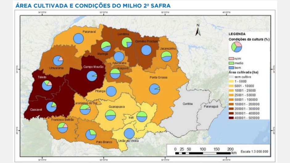 O Departamento de Economia Rural do Paraná (Deral) divulgou hoje (7/4) o boletim de Condições de Tempo e Cultivo referente à semana de 31 de março a 6 de abril. Entre os destaques está o milho, com a colheita da primeira safra em fase final e o plantio da segunda safra já concluído na maior parte do estado.